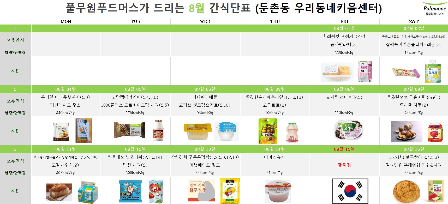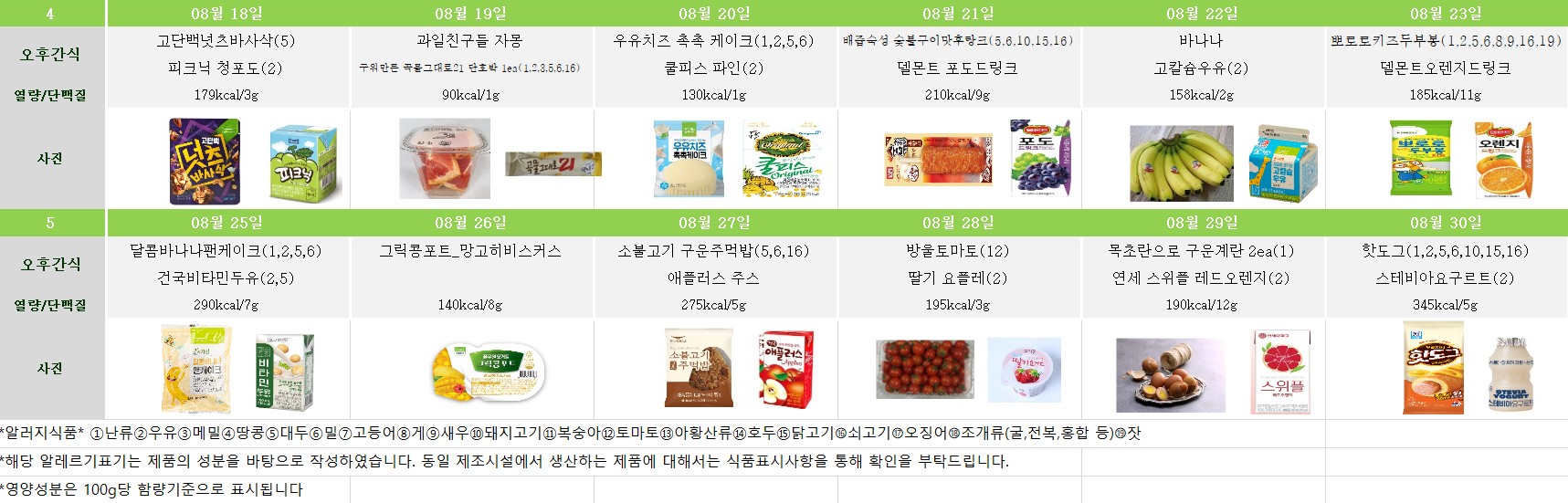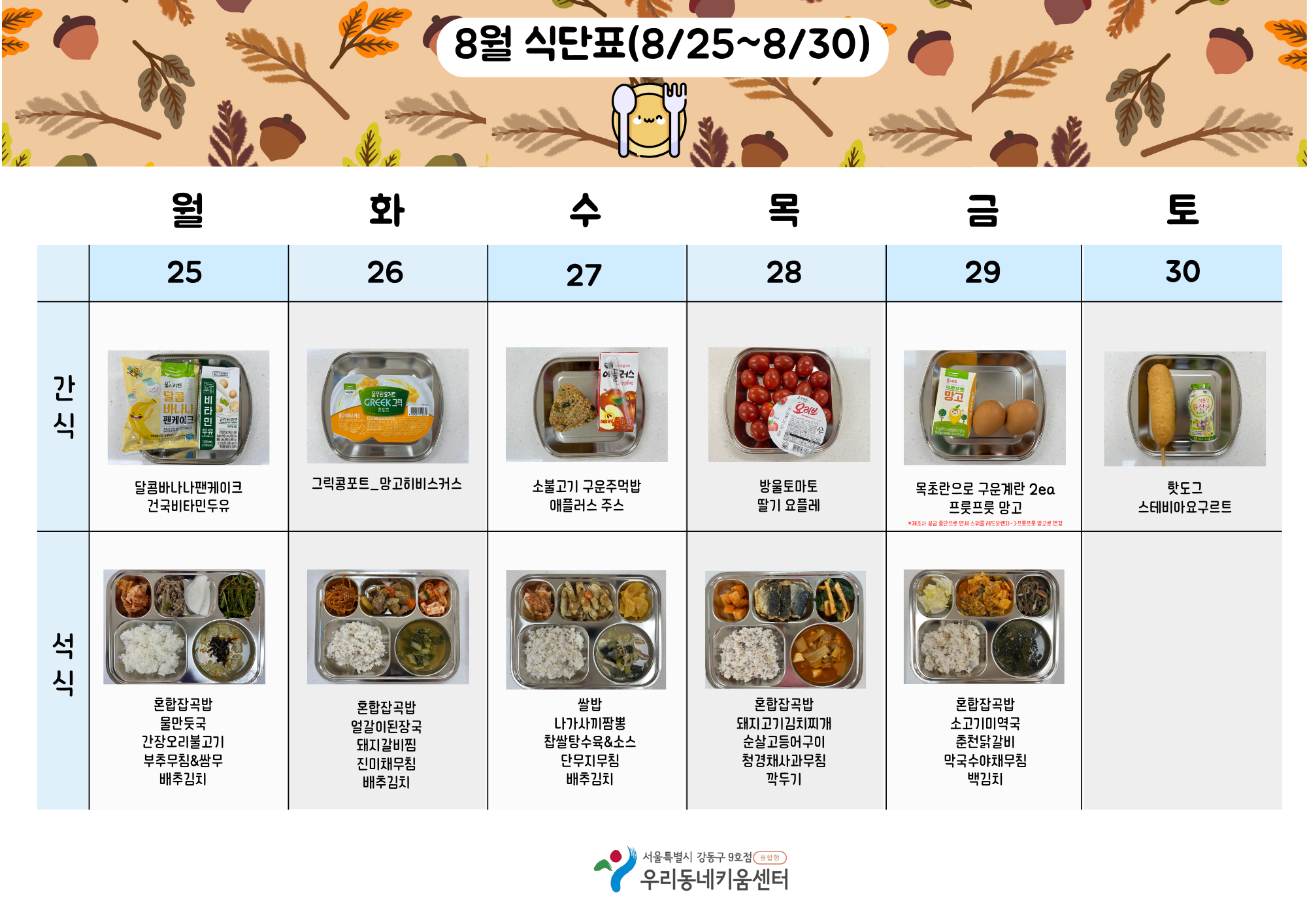 2025년 8월 급간식 식단표