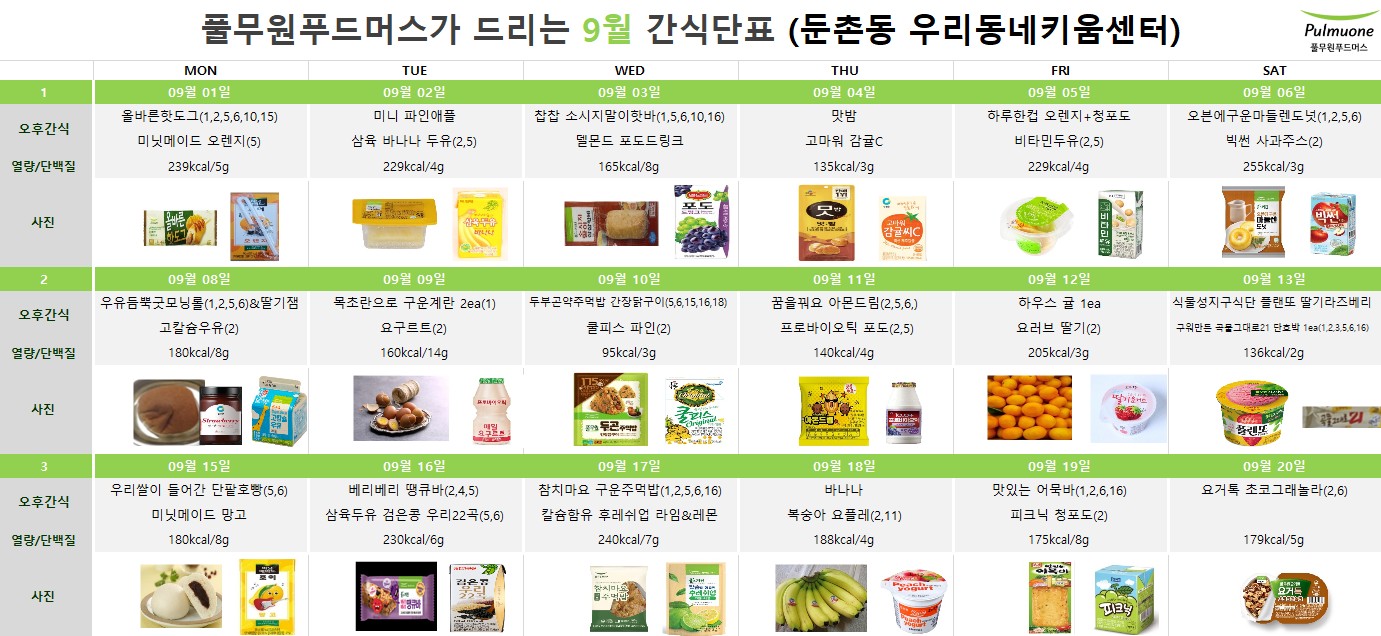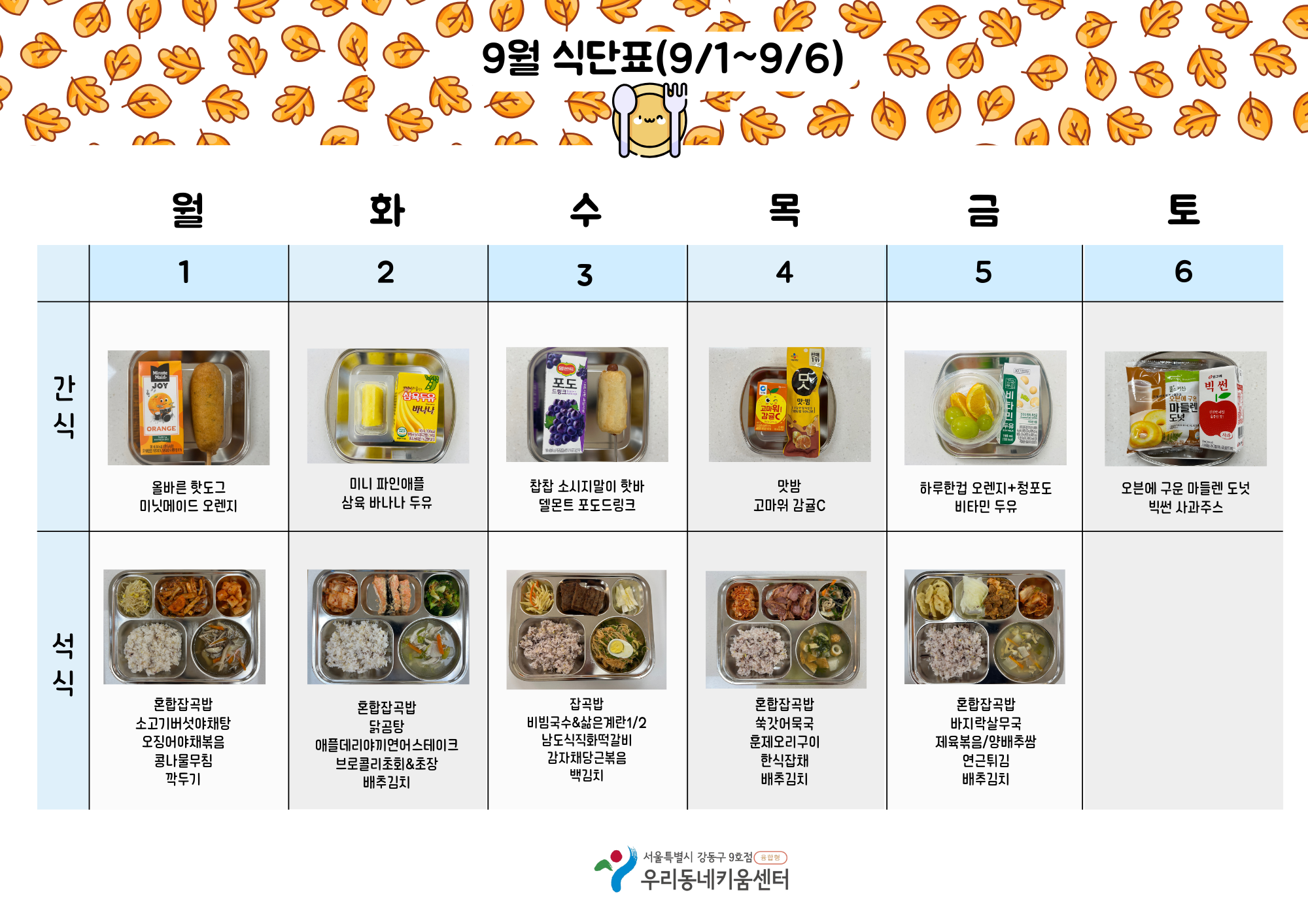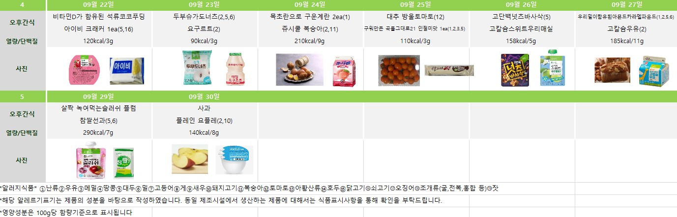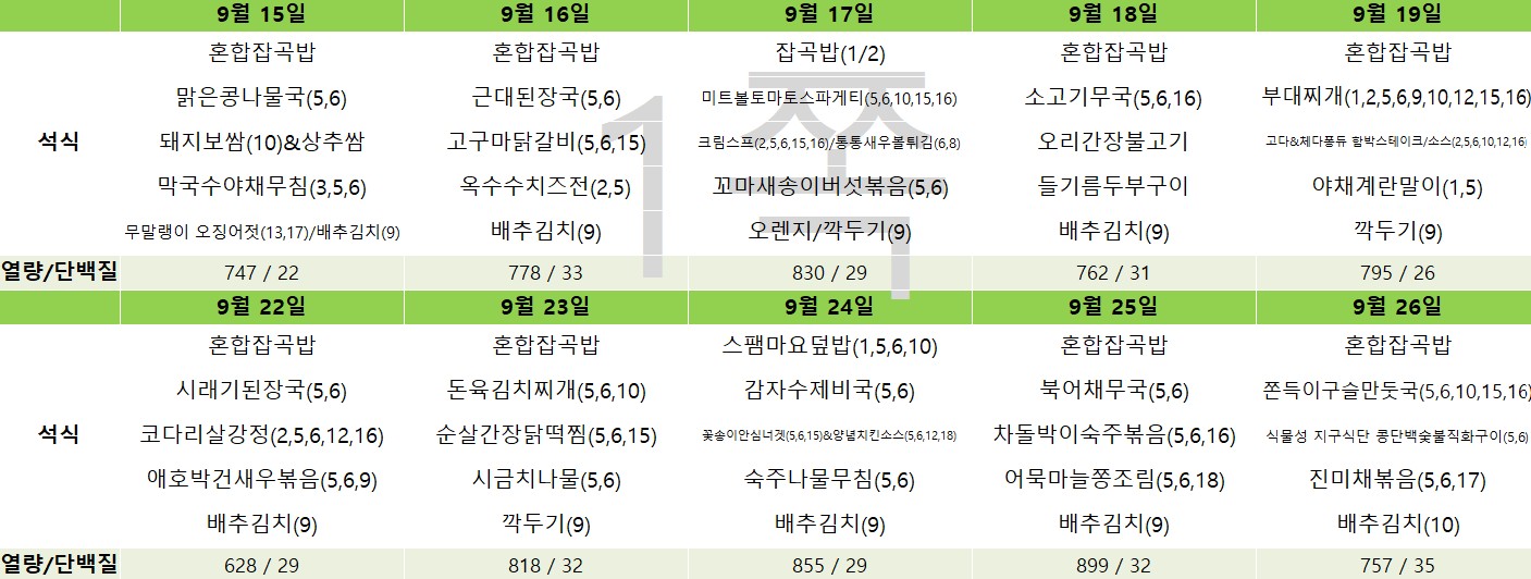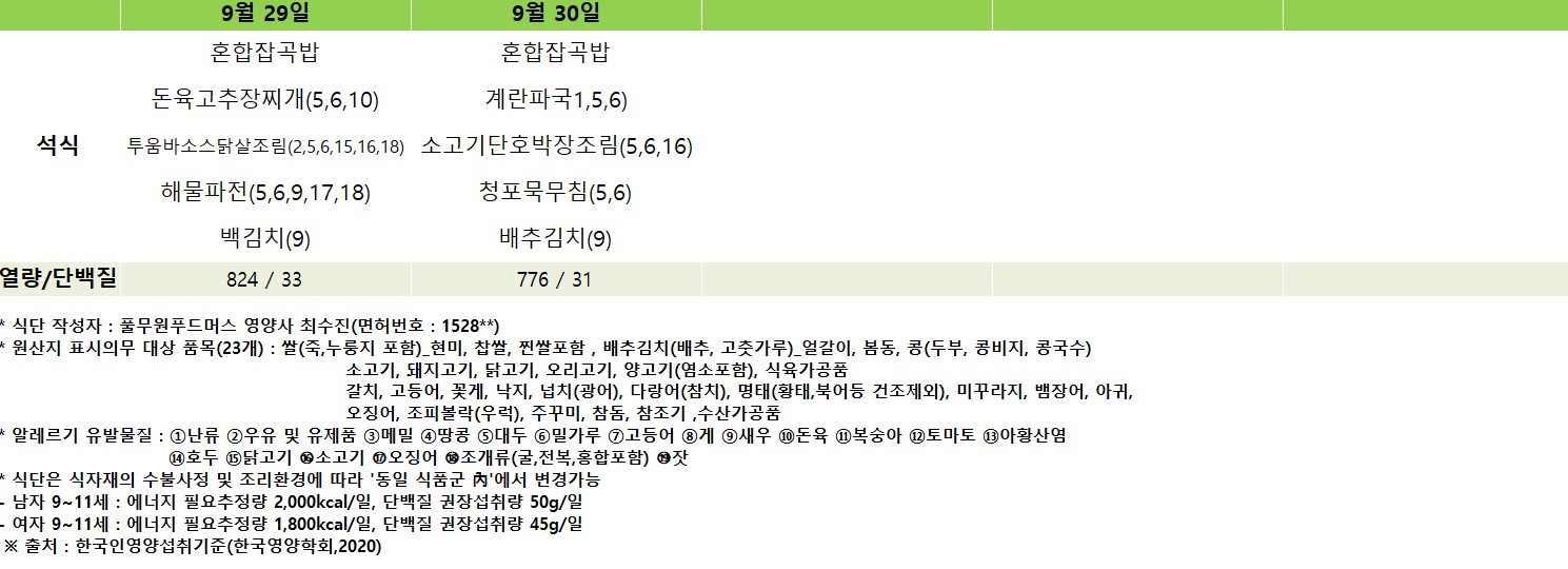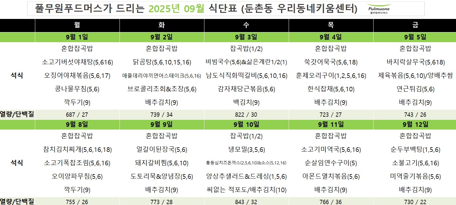 2025년 9월 급간식 식단표