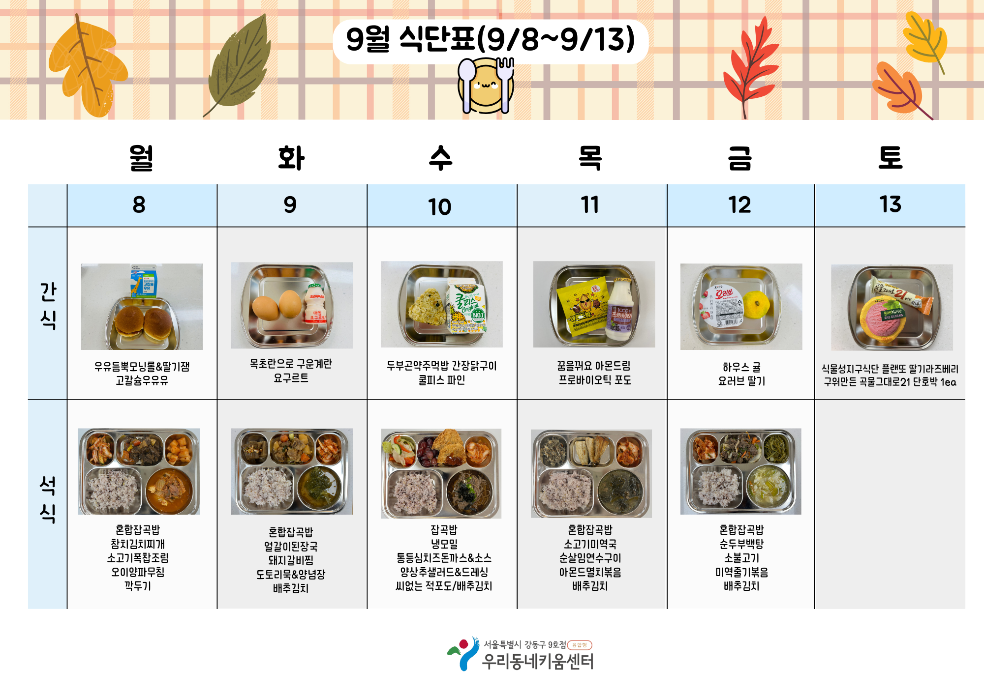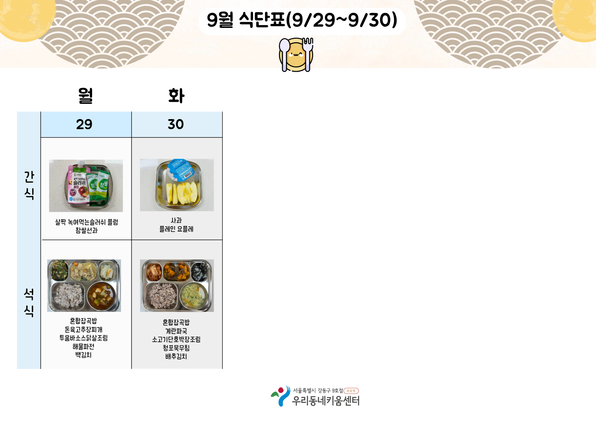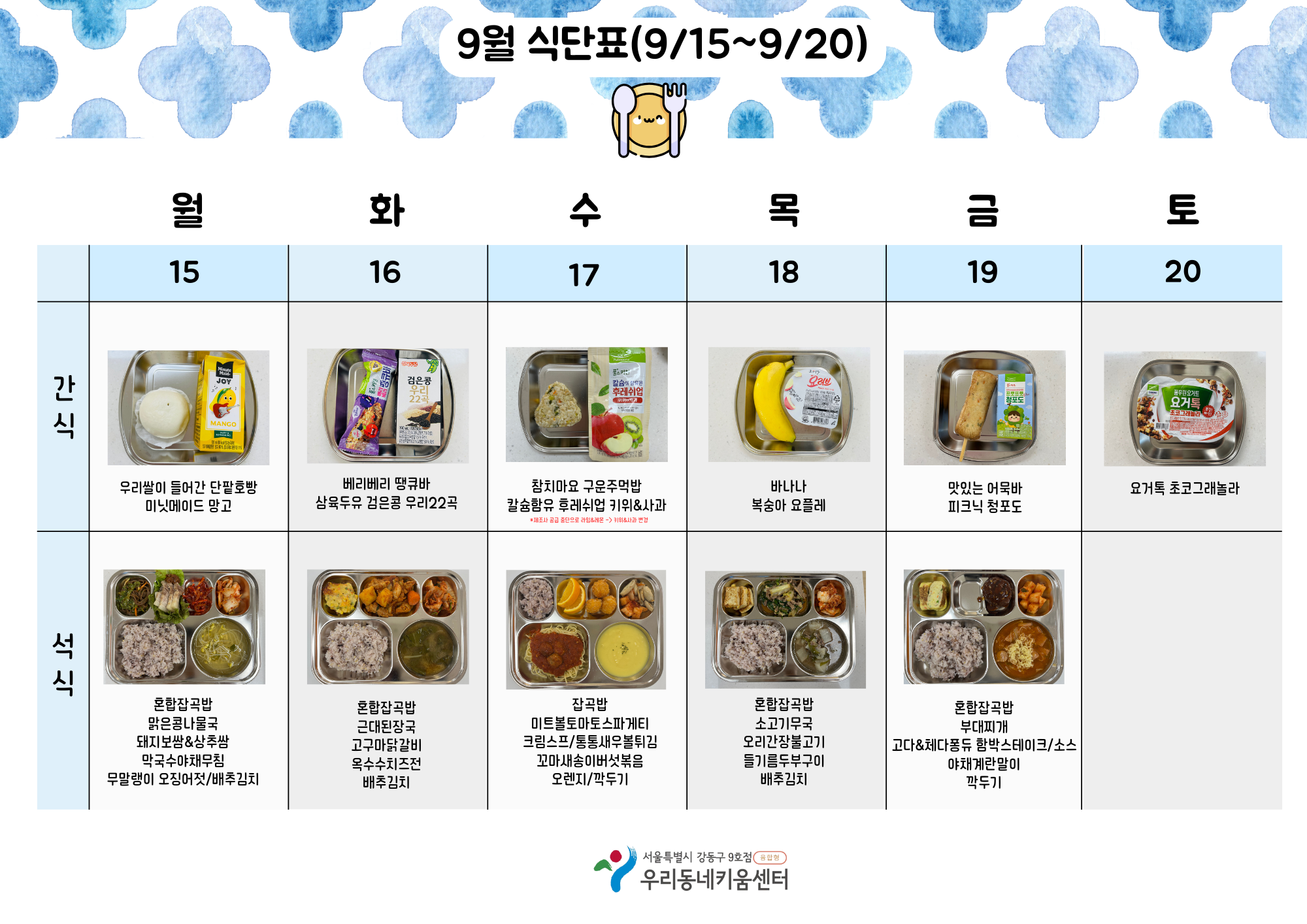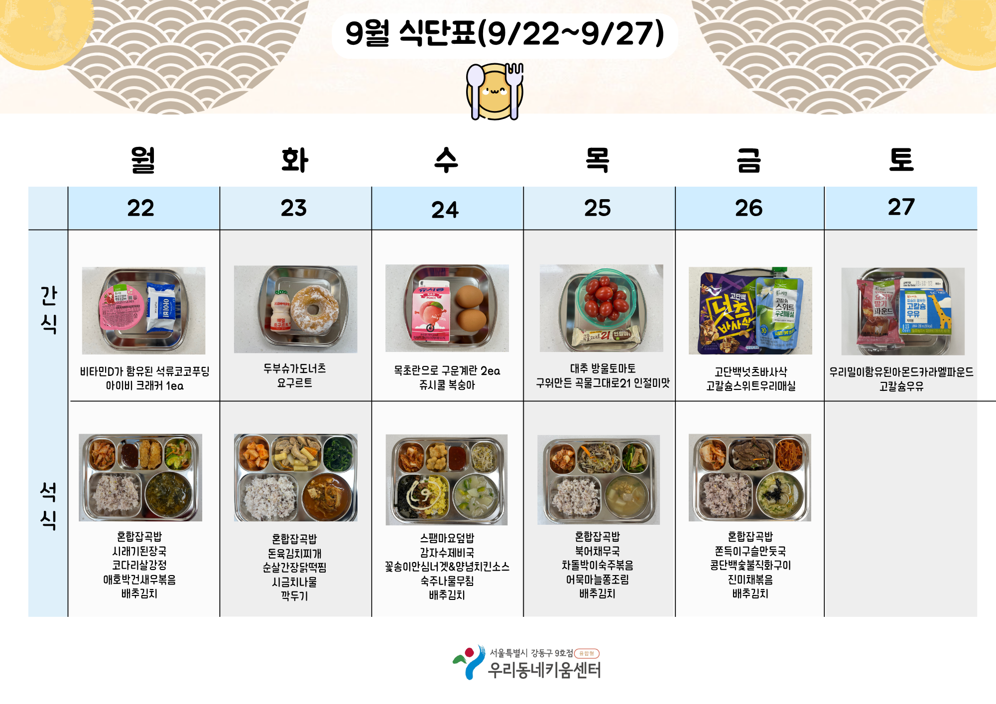 2025년 9월 급간식 식단표
