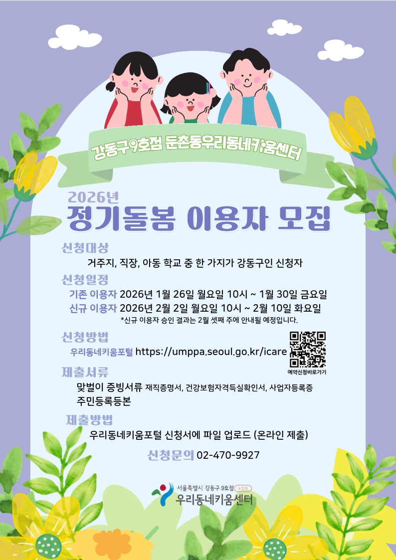 2026년 1학기 정기돌봄 아동 모집 안내